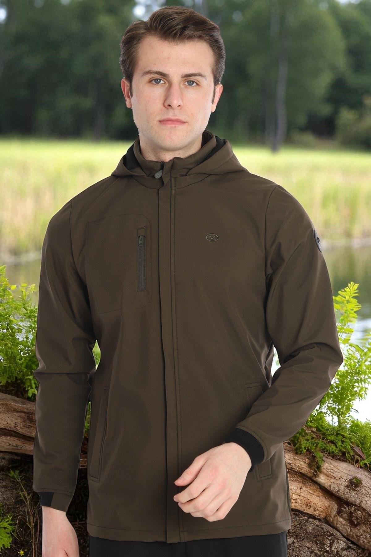 Escetic Haki Erkek Çıkarılabilir Kapüşonlu File Astarlı 3 Cepli Su İtici Rüzgar Geçirmez Softshell Spor Mont 7090 (7090_Haki1)
